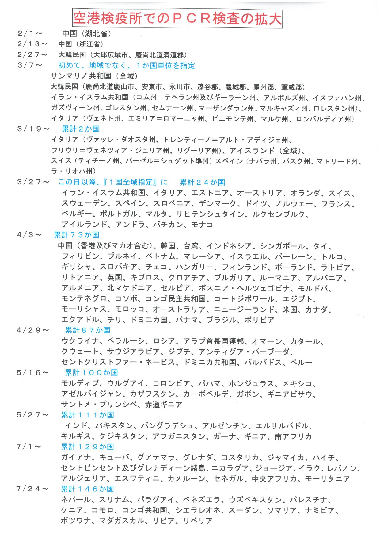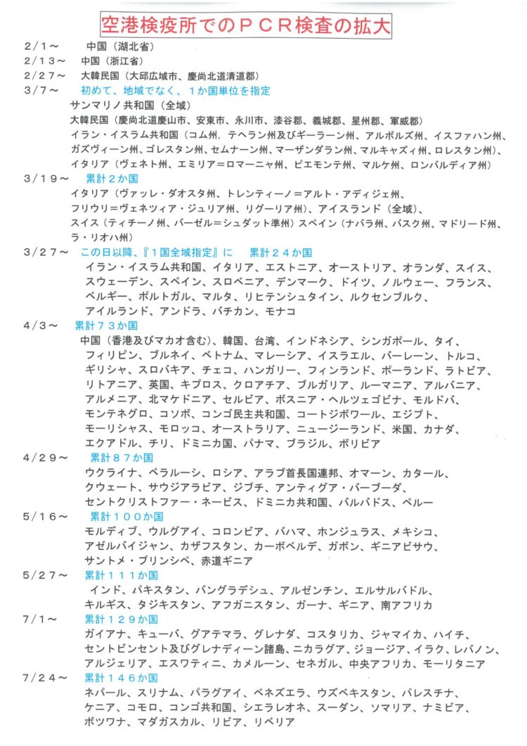 そして、厚生労働省から昨日、PCR検査対象国リストが届き、一覧としては、厚労省HPや報道もされていないとの事ですので、お伝えします。