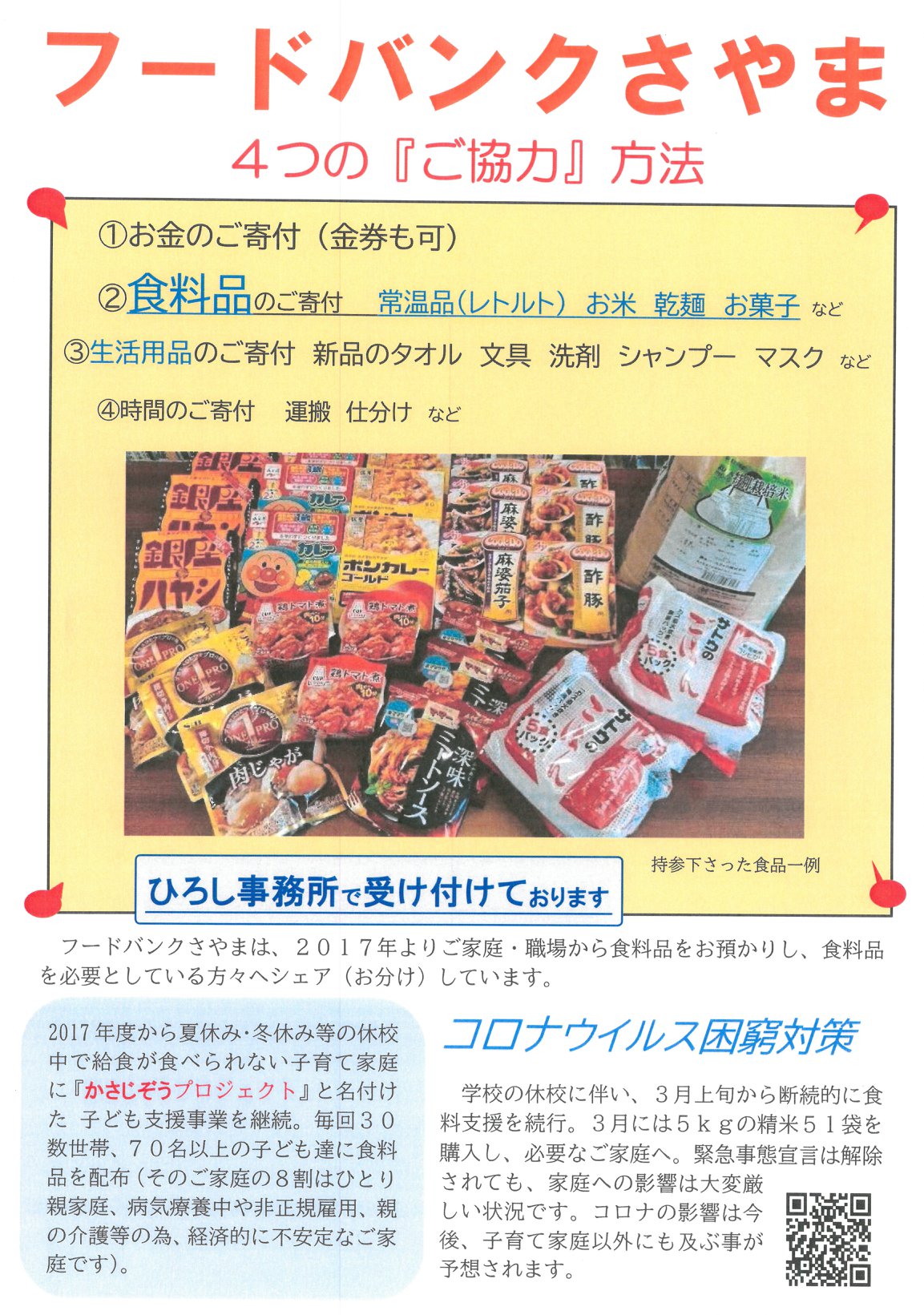 先日は、ガン治療をされている方から、「フードバンクに」と寄付金をお預かりしました。