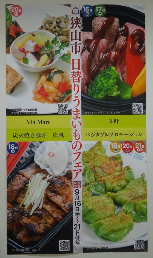 【狭山市 日替りうまいものフェア】が、『まるひろ入間店』4F催事場で、21日(月・祝)まで行われており、私は今日行って来ましたが、既に売り切れていました。明日は10時半頃から、味叶さんが100食出すそうです。