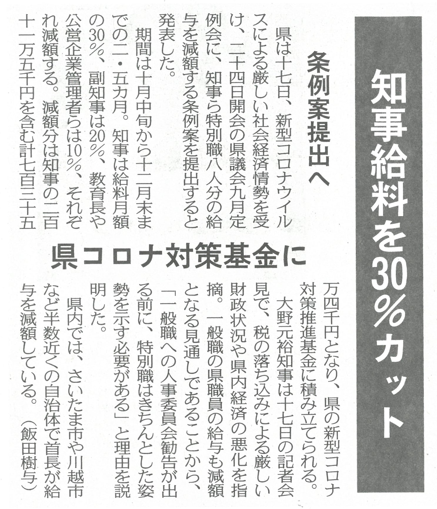 公務員のボーナスなどは、12月に出される人事院の勧告で、大企業(工場労働を除く)の状況から変動し、知事もそれにならう事が多いですが(例外も)、今年12月の減額が5%を超える事は無いように思われ、12月以降を知事本人はどうする考えなのか確認したいと思って動いています。