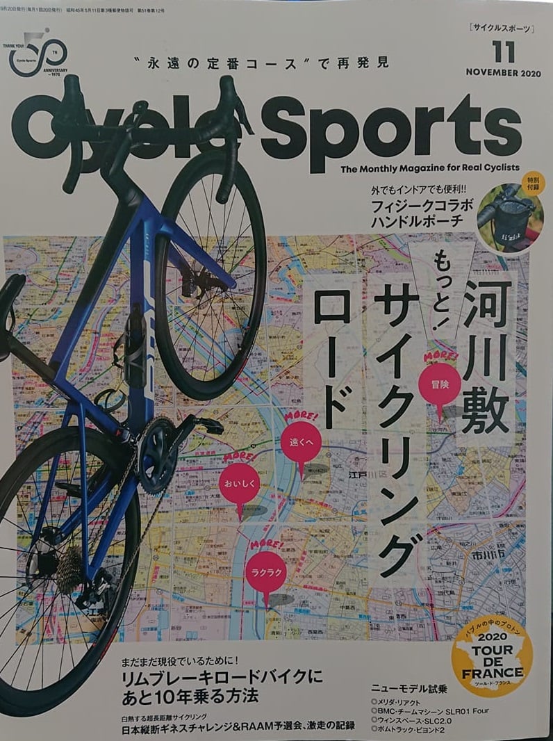 いま発売中の『サイクル🚲スポーツ』11月号に、埼玉・荒川など国内6つの『🚴サイクリング・ロード』の特集が。川ごとにQRコードが付いていて、おすすめスポット・飲食店が地図に書いてあり、実際のサイクリングの時、使えますね。 それとは別に全国144・埼玉県内は7つのサイクリングロードの高低差がQRコードを読み込むと、表示されます。ここには入間川自転車道 22kmもあります。 コロナ禍経済を動かすには、『アウトドア』だと思い、動いております。まして、狭山市の真ん中には、川。