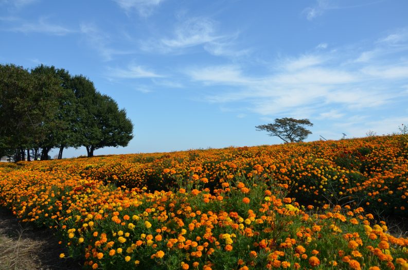 見ごろだそうです🌻。『マリーゴールドの丘公園』1万株。