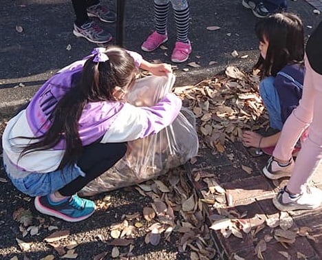 🍂落ち葉はきも、子ども達が手伝っていました。
