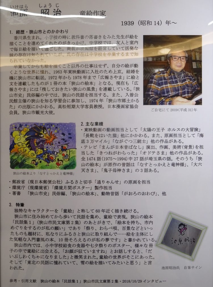 今回のスペシャルゲストは、📺『まんが日本昔ばなし』の演出・作画を担当された狭山市の童絵作家 池原昭治さんが森の中で講演「昔、『化け地蔵』の所が、水野の開墾の中心だった。開墾する前は、暗い雑木林で、『化け地蔵』の名前の由来は、旅人が暗がりにろうそくで照らされる地蔵を見てそう思ったり、地蔵が見つからずにどこかに化けているのではないかと思った事から、名付けられたのではないかと言われている」。