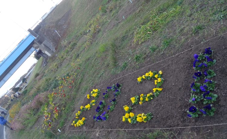 新富士見橋を広瀬側に渡った右側の花壇。『2021』が読めます☺?