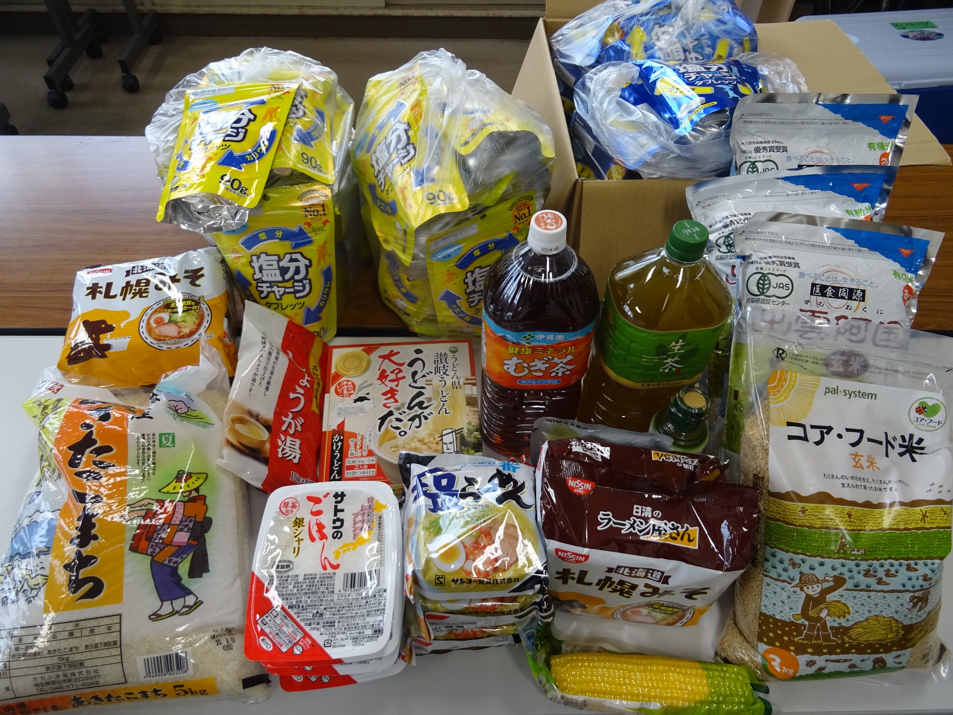 📷写真は、この3日間で、ひろし事務所にご持参下さった食品。