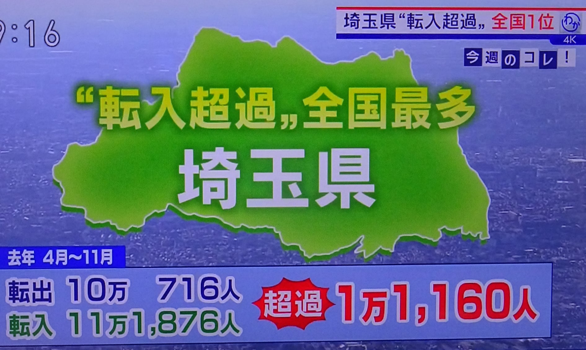 【“転入超過”埼玉 全国1位】 昨年4~11月