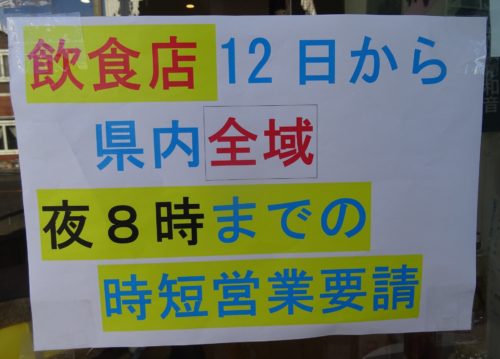 時短要請7日までって本当ですか?時短要請が決まった直後から私の事務所の窓には、