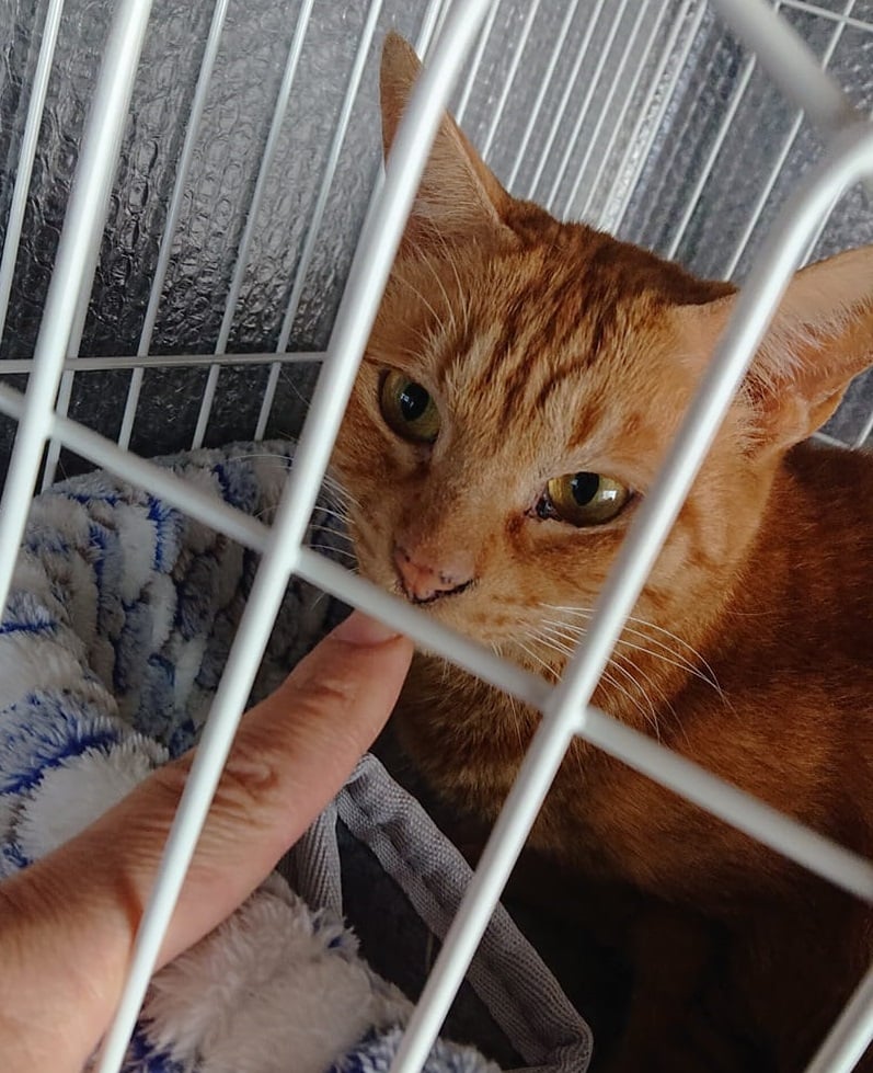 📷写真は、ひろし事務所(一時シェルター)から 今日巣立って行く茶トラ🐱。人懐っこい子で、ちょっとウルウル。バイバイ✋幸せになってね。