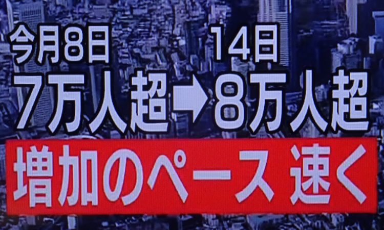 【陽性者が1万人増えるのが、東京都では、わずか6日】