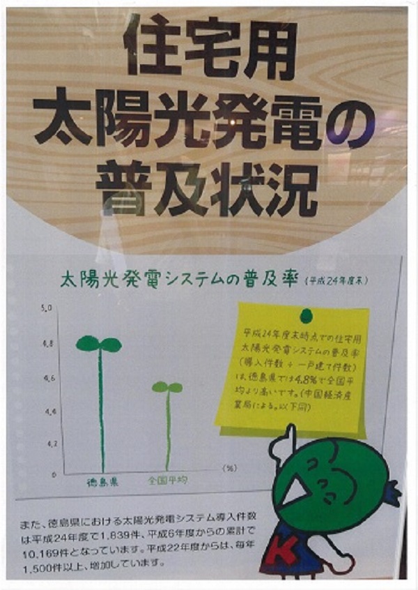 自分の住んでいる県の太陽光パネル設置状況は他県と比べてどうかを示す、徳島県の展示パネル。