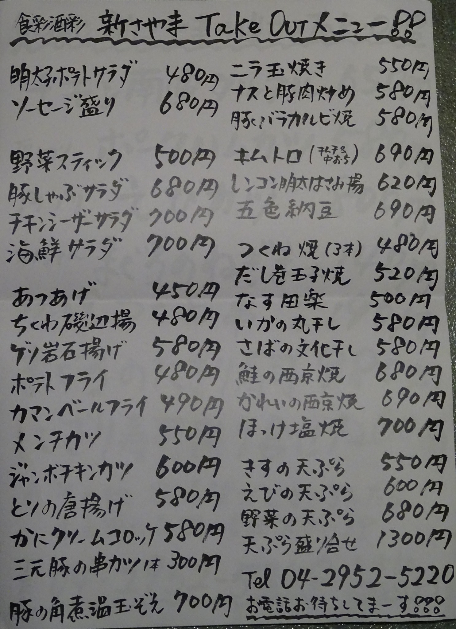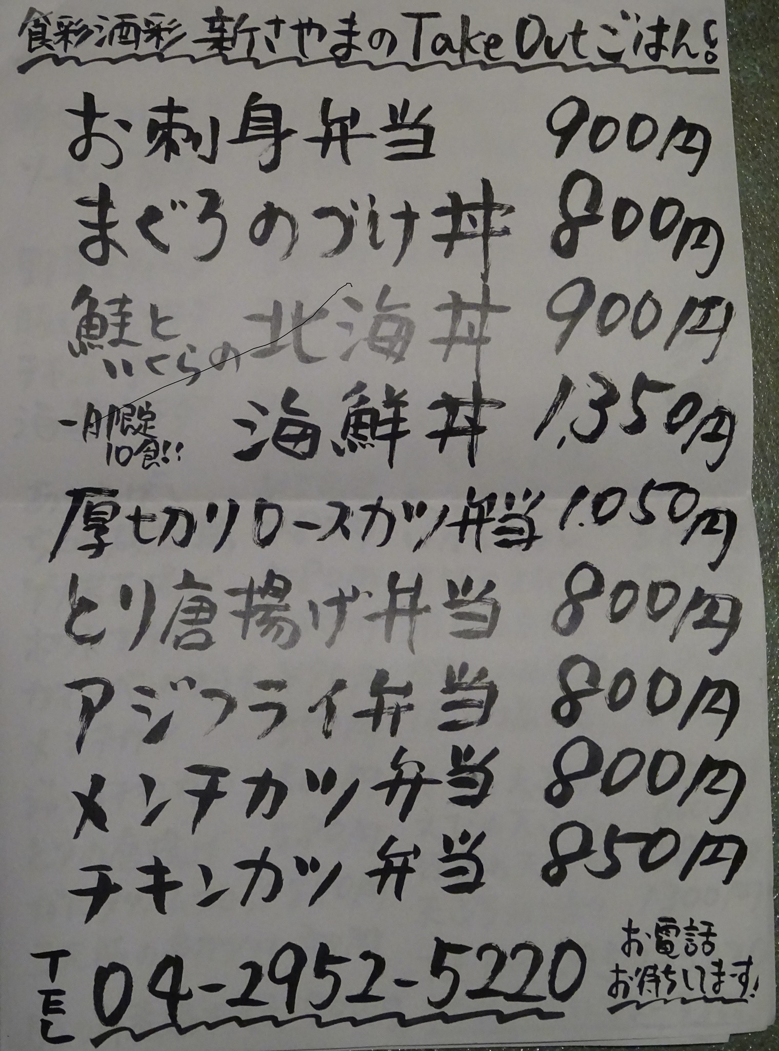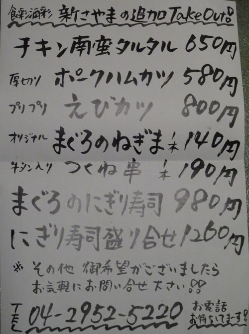 テイクアウトは電話で注文出来、8時までに私も取りに。