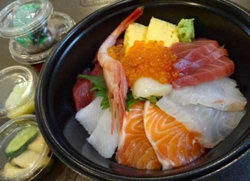 私のチョイスは『海鮮丼』と『れんこん明太子はさみ揚げ』。