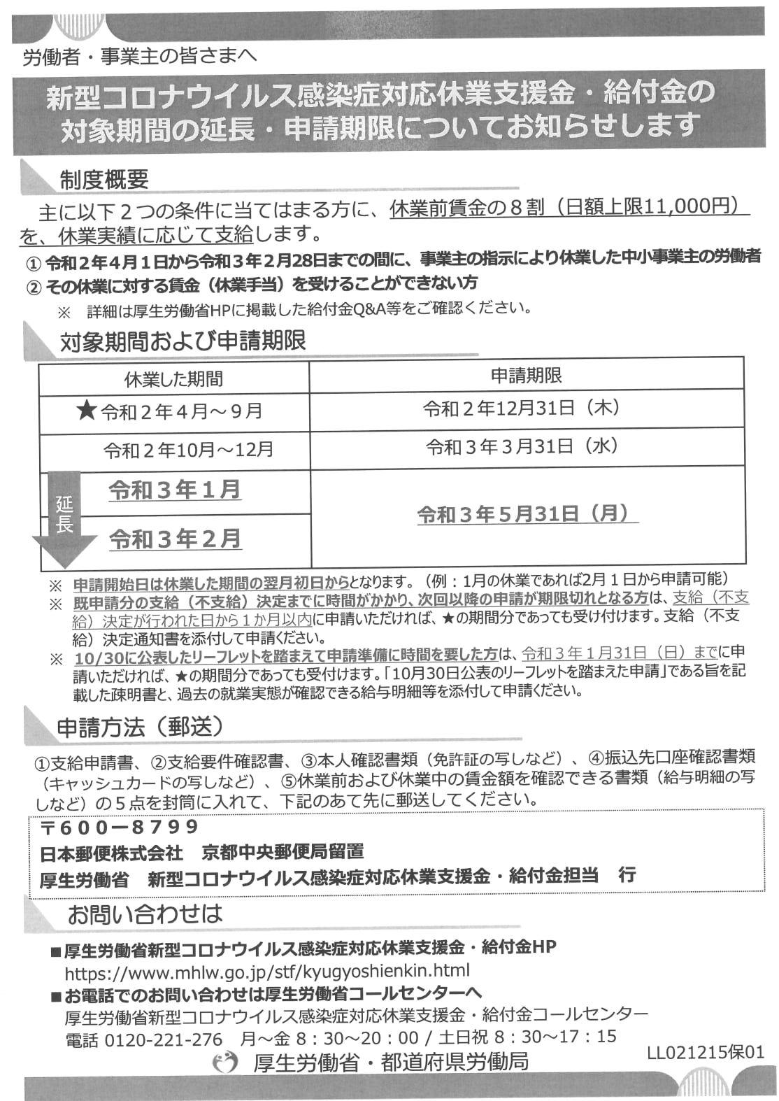 既に昨年4~9月分の申請は締め切っていますが、分かりやすい厚生労働省・埼玉労働局のHPは無く、コールセンターの電話は、私が電話して10回つながらなかったので、改善を求めています(回答待ち)。