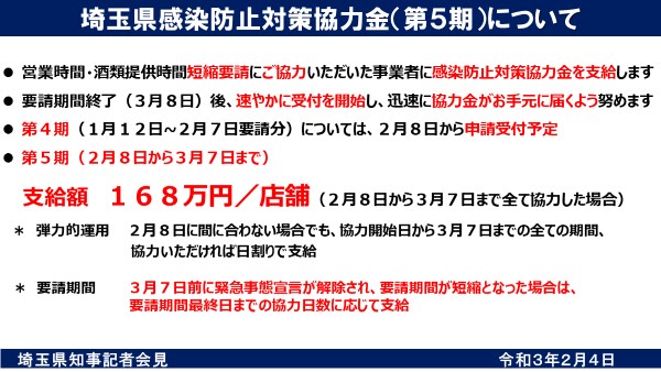 『時短協力金』3月7日前に緊急事態宣言が解除される場合、最後の日までが対象(その際には、お伝えします)。