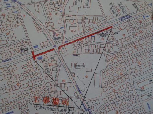 入曽方向の道は、車線規制無し。工事時間中、お急ぎの方は、迂回を。工事期間が早く終わる場合、お伝えします。