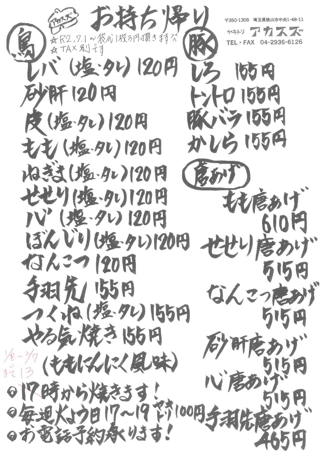 豚トロ・豚バラをテイクアウト