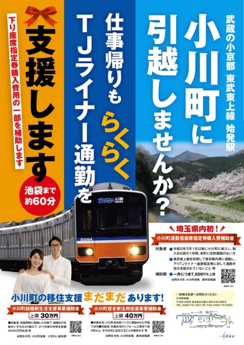 通勤に係る下りTJライナー座席指定券購入費用の一部を補助します!-小川町オフィシャルサイト