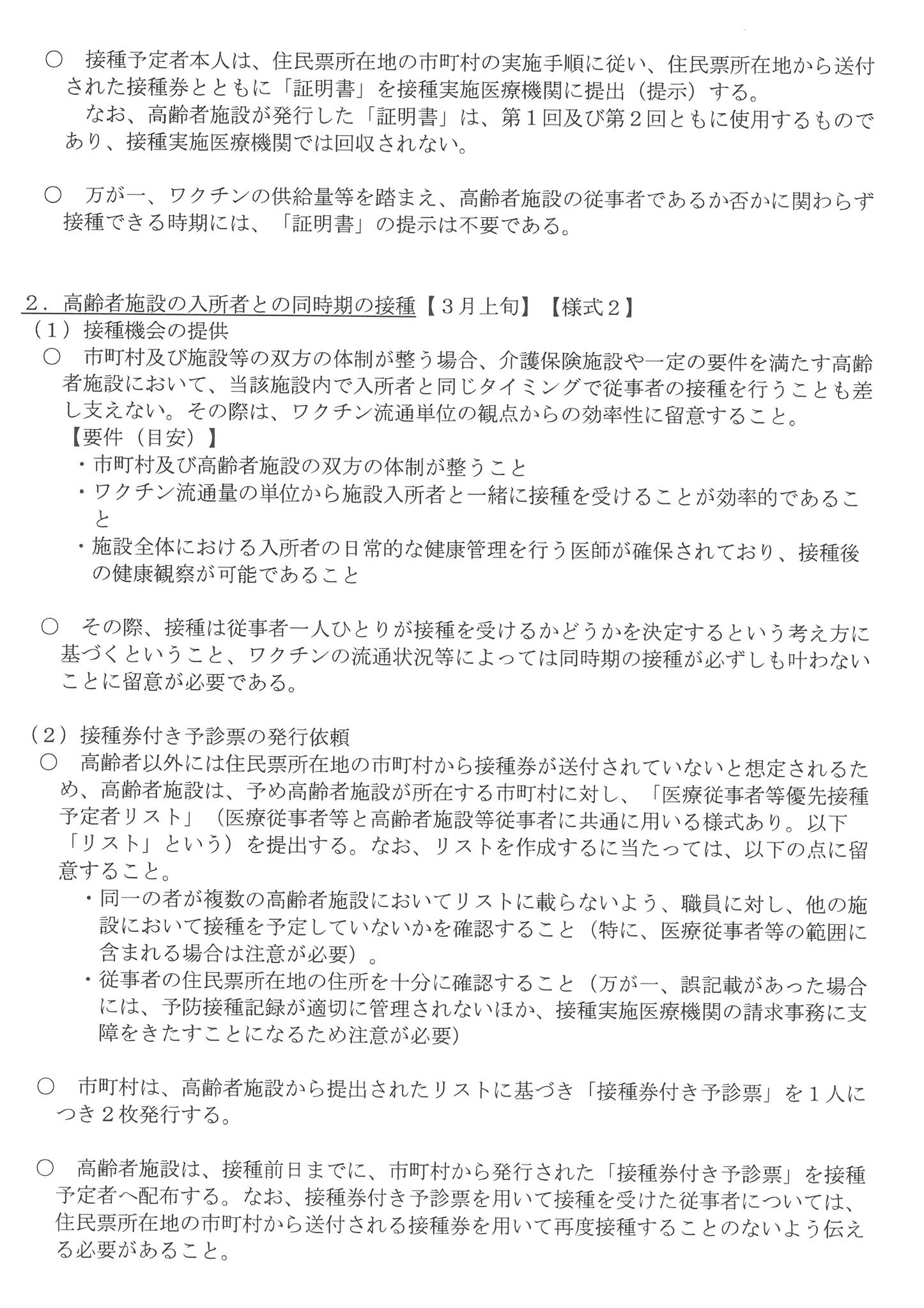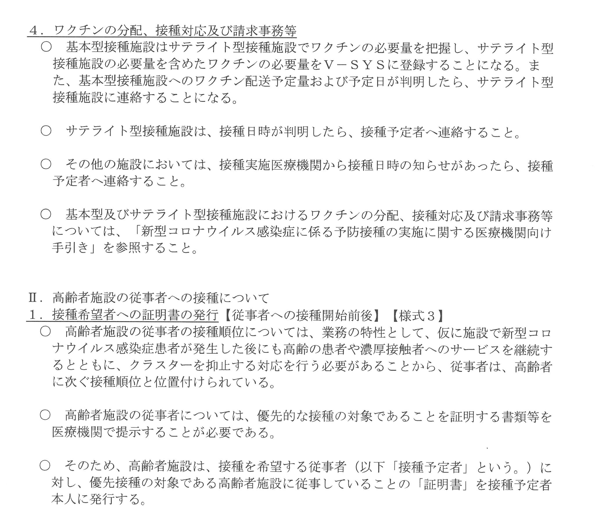 (厚労省通知の題名)『高齢者施設への新型コロナウイルス感染症に係る予防接種を行う体制の構築について』1月28日