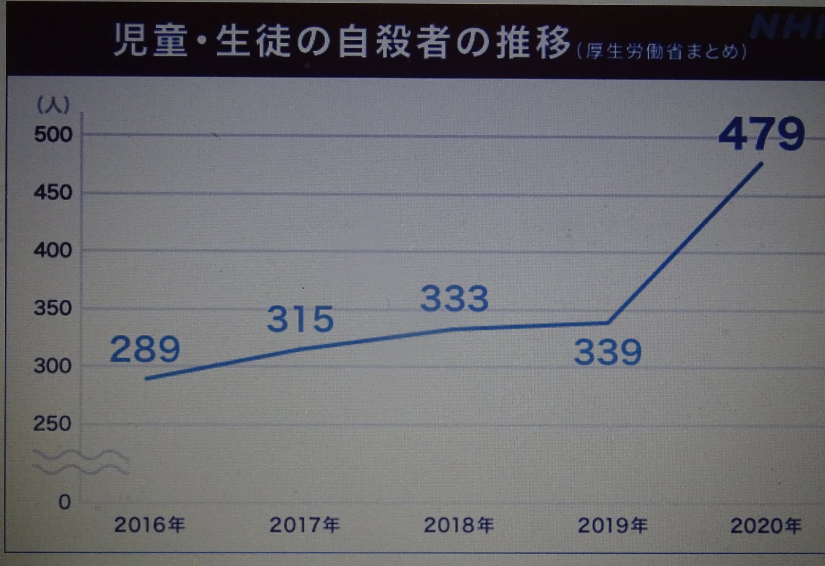 自殺した児童生徒 最多の479人 高校生の女子が大幅増加ーNHK NEWS WEB