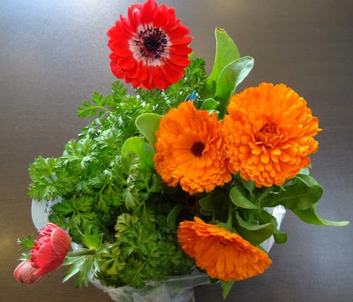 🌼花屋の『梓園芸』さんが、市内 多頭飼育の対策の為に、🐱数匹 一時的に預かって下さっていると聞き、お礼を述べさせて頂くと共に、私の事務所前に飾るお花を購入。120円とか安かったので、申し訳ないですけど。