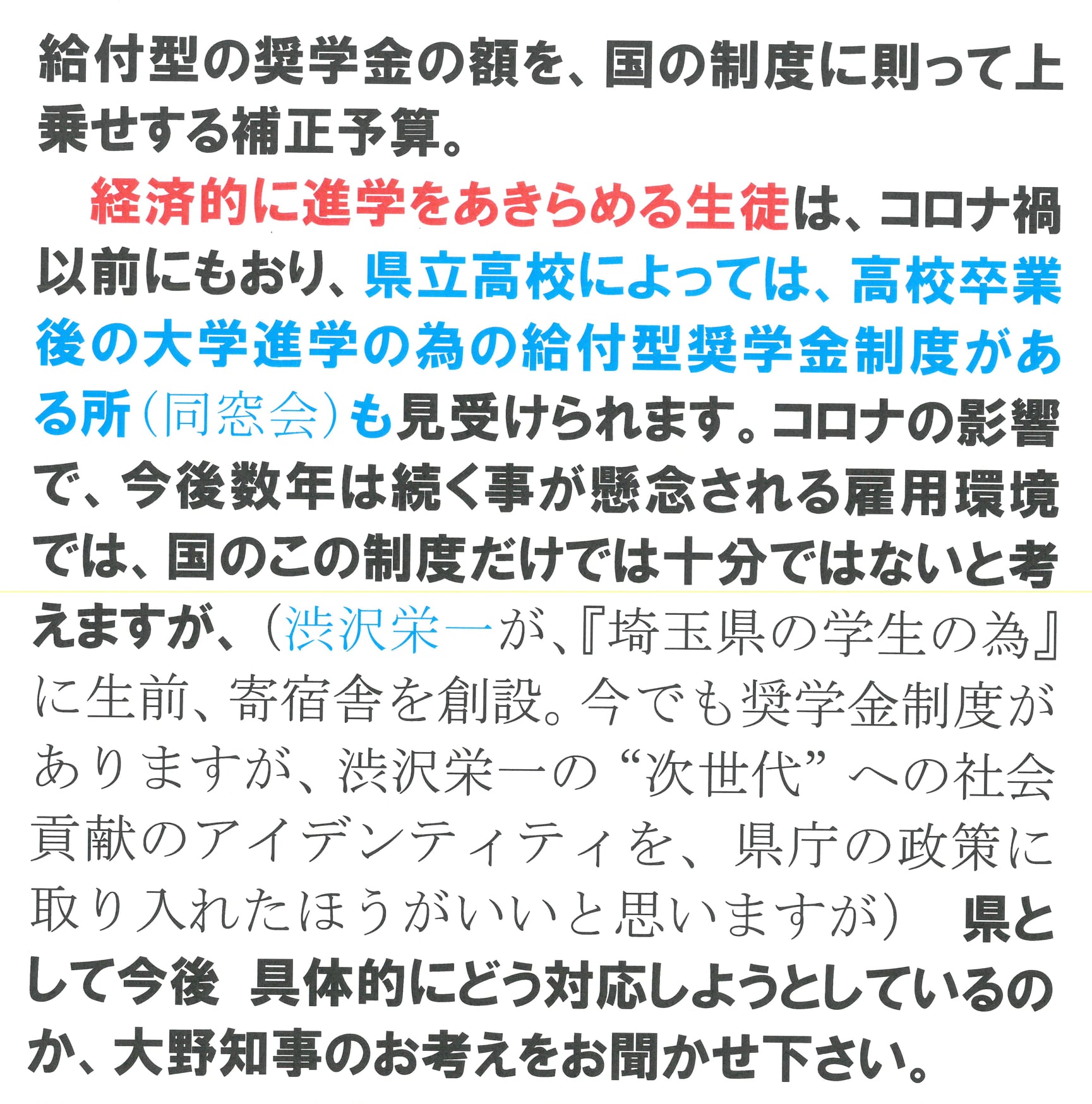 渋沢栄一が取り組んだ『次世代育成』のアイデンティティを、コロナ禍の中、埼玉県庁で生かさねばと昨日、県議会で質問しました。
