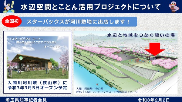狭山に全国初、河川敷 大型公園内の『スタバ