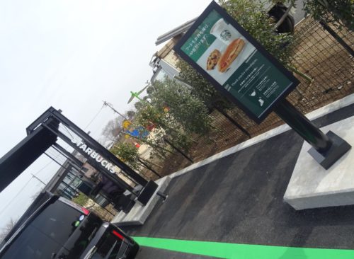 道路から車で入る際、ドライブスルーと駐車場の違いが分かりにくく(満車の際に警備員が静止しづらい)、危なさを感じたので、駐車場の警備員・工事事業者の方にお話を伺った後、市役所職員と、道路から駐車場にかけての表示について話しました。