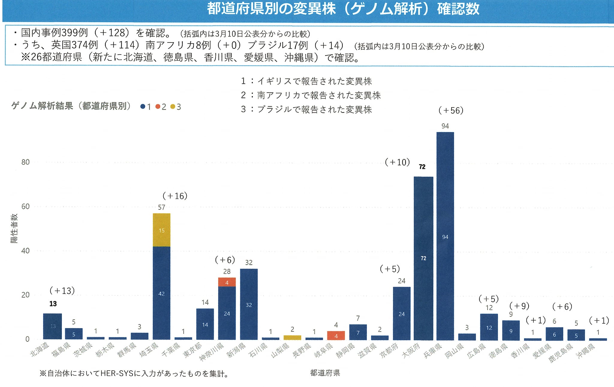 変異株の確認数が多いのは、他県より丁寧に調査をしているから。埼玉で確認されているのは、英国で報告された変異株42人・ブラジルで報告された変異株15人。