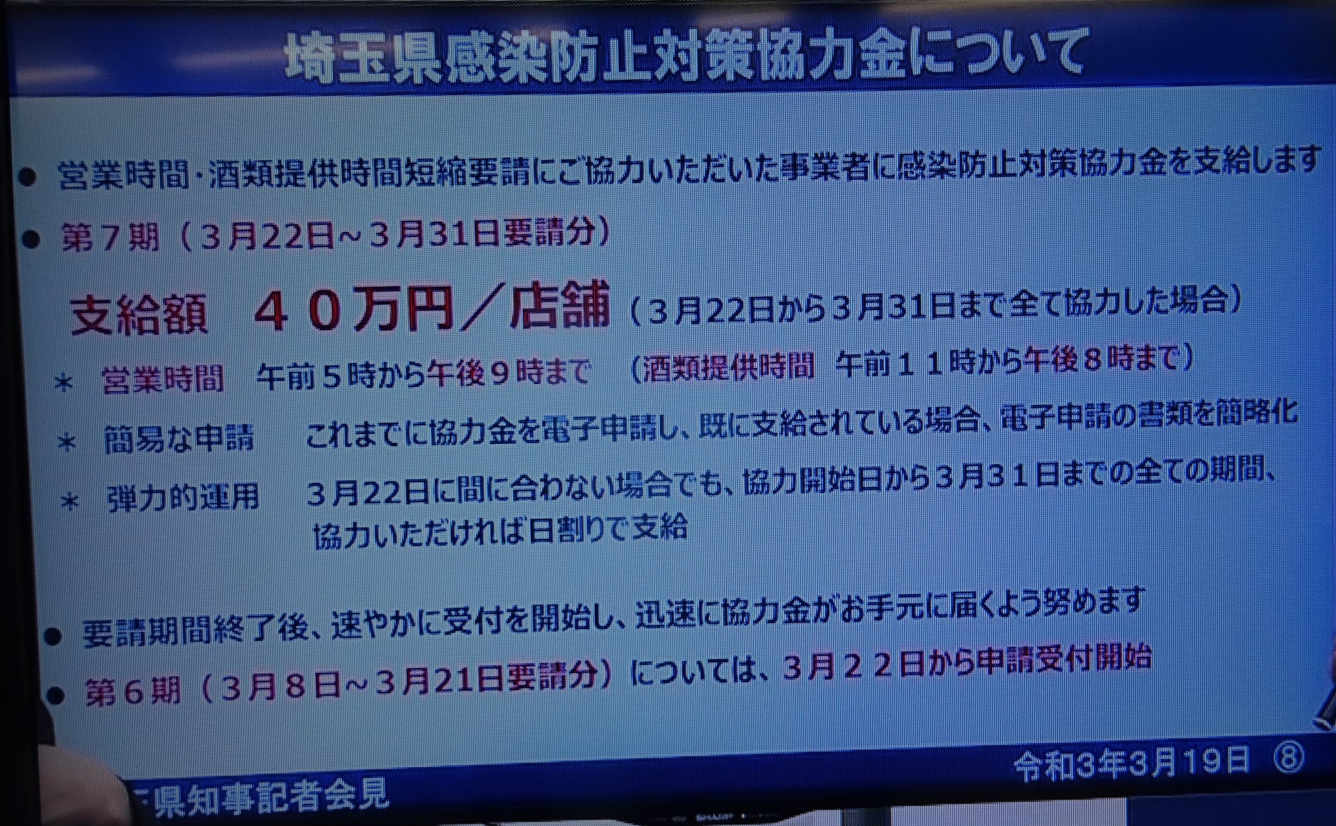 22日からでなく途中から時短に協力する場合、31日まで協力頂く事が条件との事。