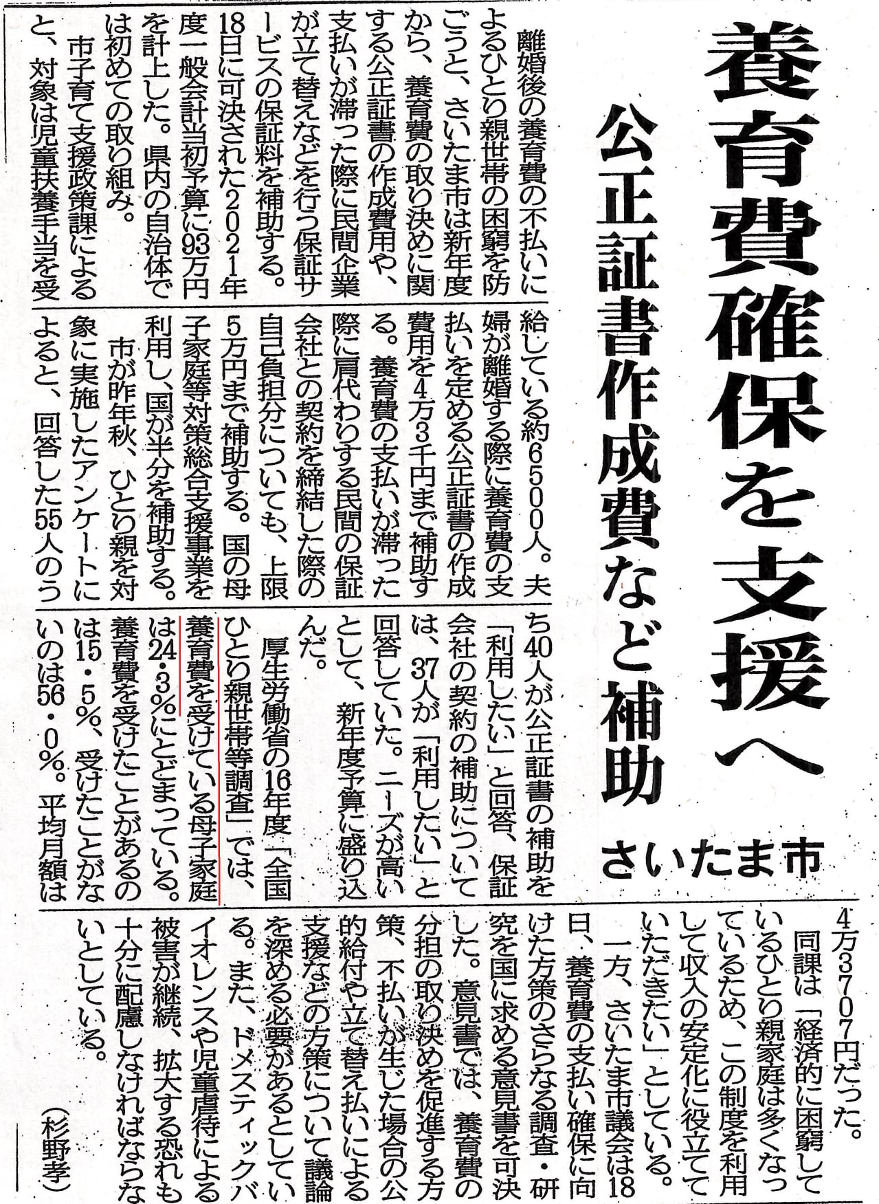 さいたま市のように⇩、県として他の市町村と連携して、養育費確保補助が出せるようにしなければと思います。
