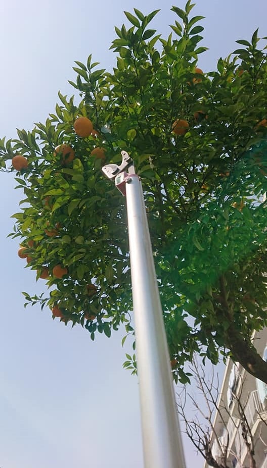 手が届かない高さで『高枝切ばさみ』で つまむ事は出来ても、ハサミが(老朽化で)壊れていて、つまんで力で切りました。(^O^)