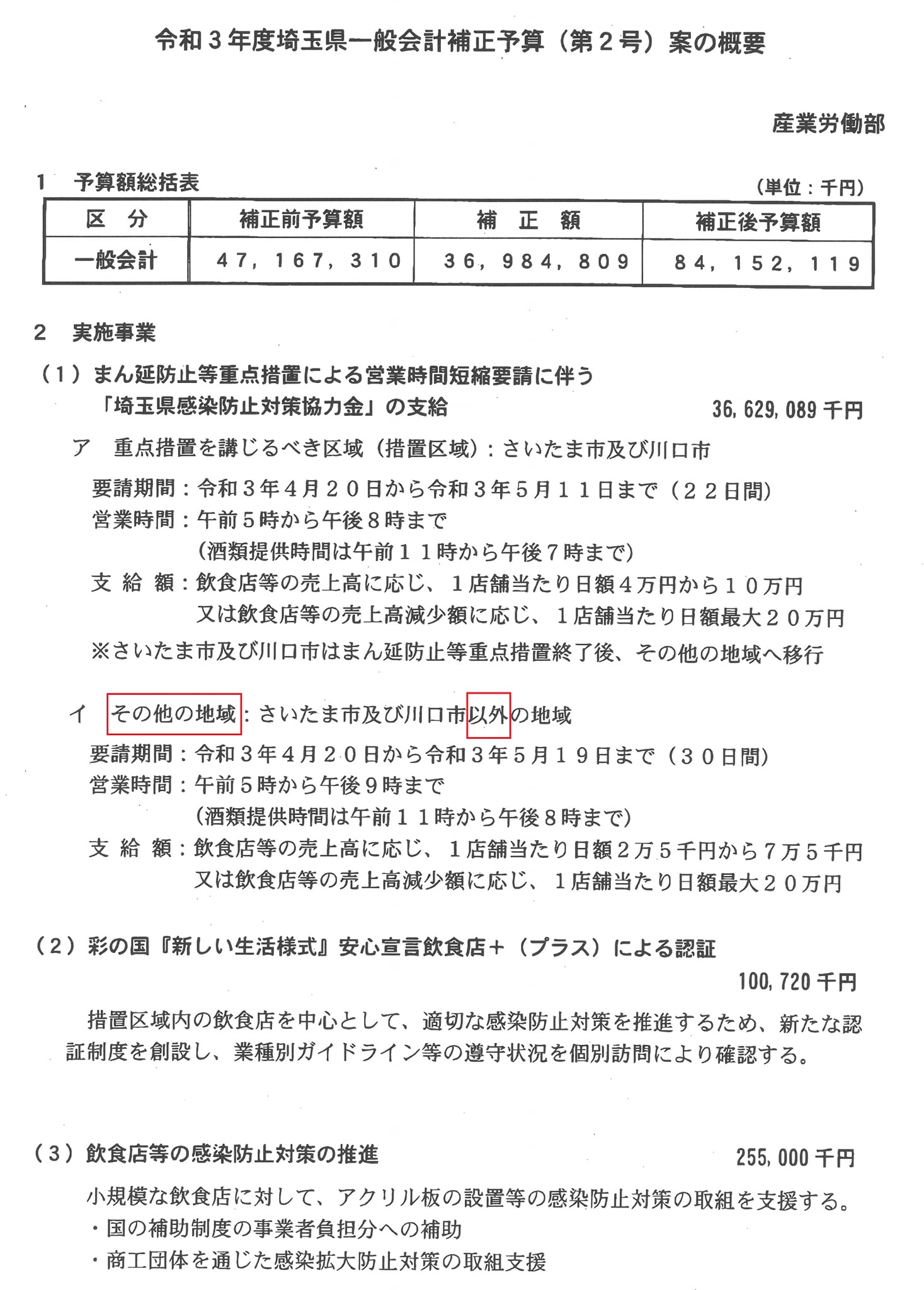 「まん延防止」 期間中の協力金は最大20万円/埼玉県-テレ玉