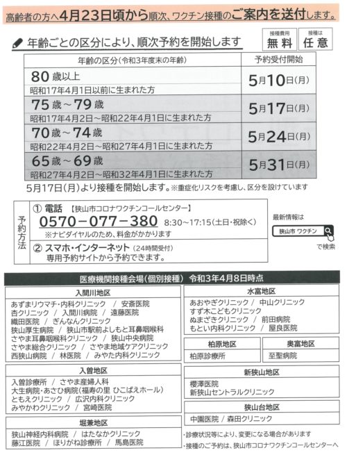 高齢者のワクチン接種予約開始時期について、自治会役員さんの✋手によって、⇩チラシが今後配布されます。自治会に加入されていない方も、もしよろしければこれを契機に(今後も災害が予想されますので)自治会への加入をご検討下さればと思います(自治会の取り組みもコロナをきっかけに今後見直されていくと思います)。