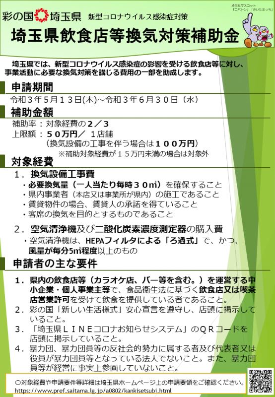 埼玉県飲食店等換気対策補助金について-埼玉県オフィシャルサイト