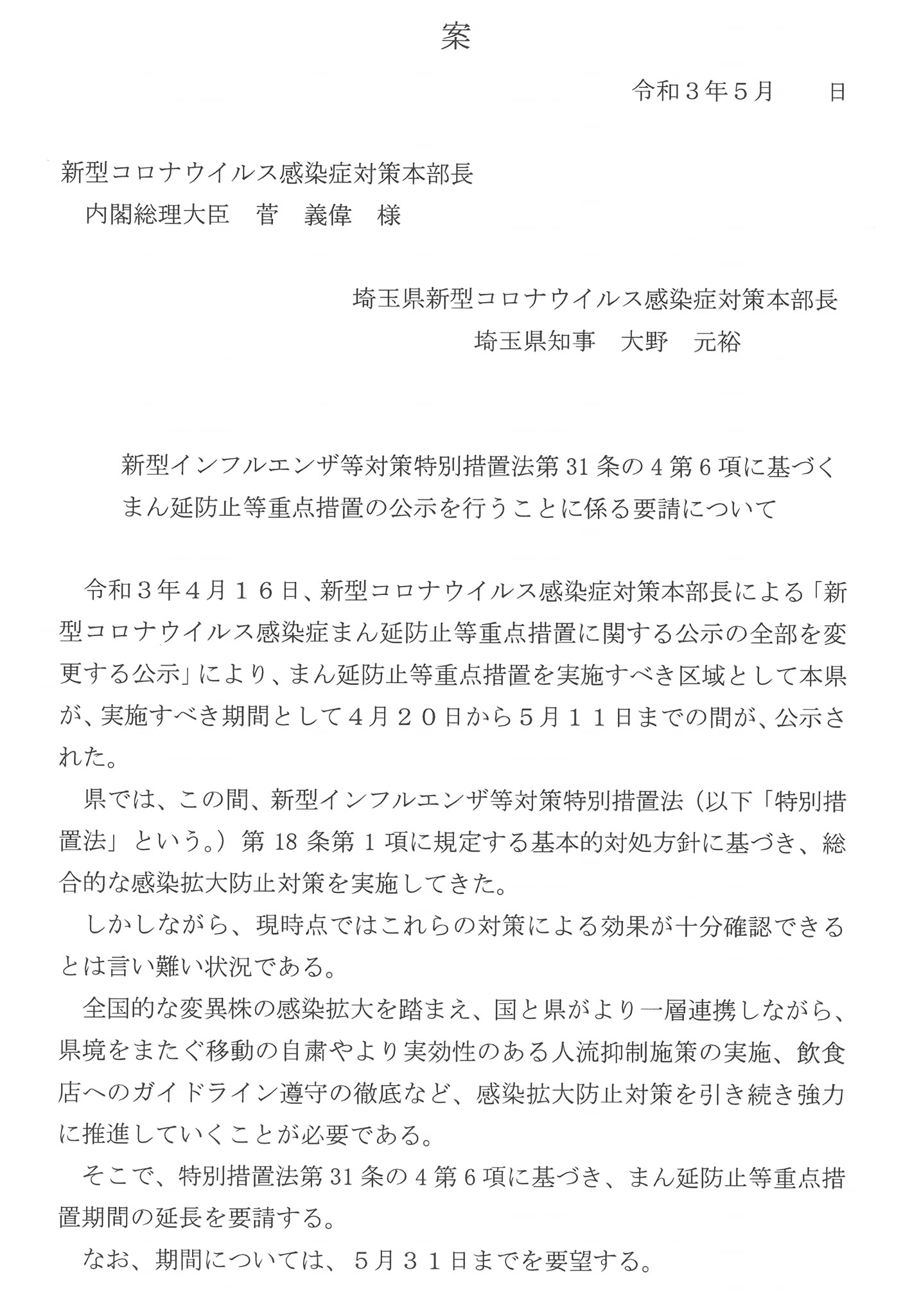 変異株が60%を超えていて、更に増える。感染力が違うので、蔓延防止策を強める。30日まで延長した後の指標は明確にしていないが、専門家会議を数回開き、検討していく。