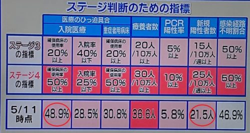 (写真は、きょう夕方のTV埼玉。2つの赤丸が『ステージ4』に達する予測の項目)