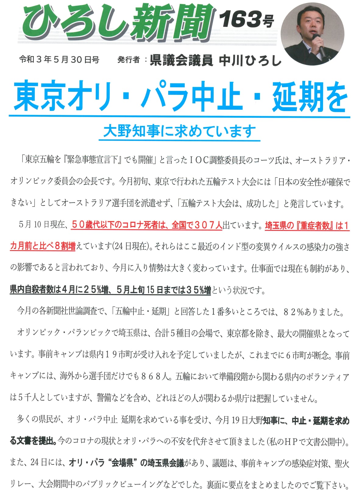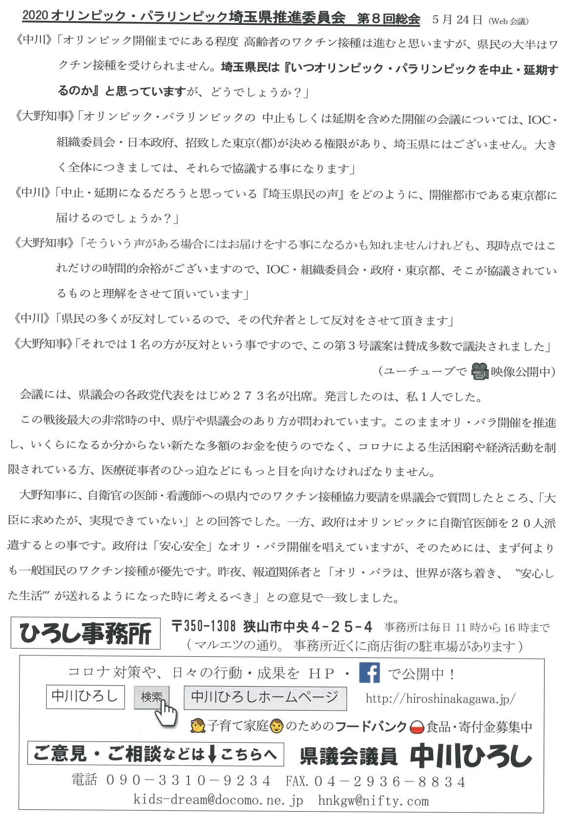 『東京オリンピック・パラリンピック中止・延期を』について、私が書いたものが入ります。