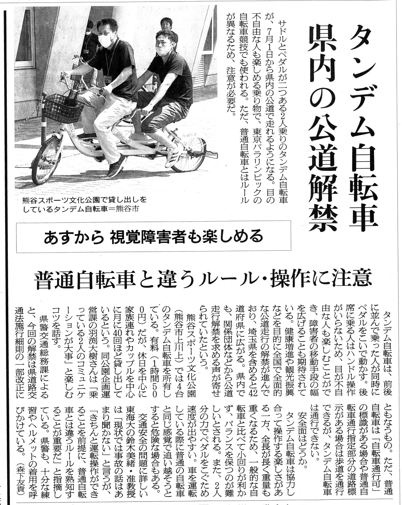 タンデム自転車の2人乗車が可能になりました―埼玉県警察