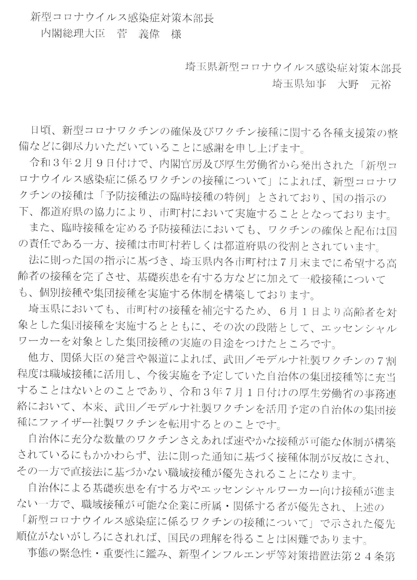 せっかく市町村・医療・県・民間事業者がワクチンを打てる体制を必死に確保したのに、肝心なワクチン供給が滞っては・・・。大野知事にワクチン確保について聞きました(少しの時間でしたが)。