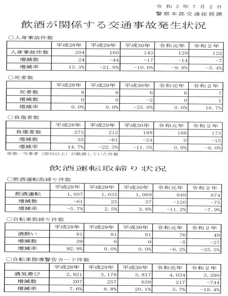 昨年、全国の飲酒死亡事故は159件。熱海での土砂災害などニュースはどんどん変わって行きますが、立ち止まって考えたいと思います。