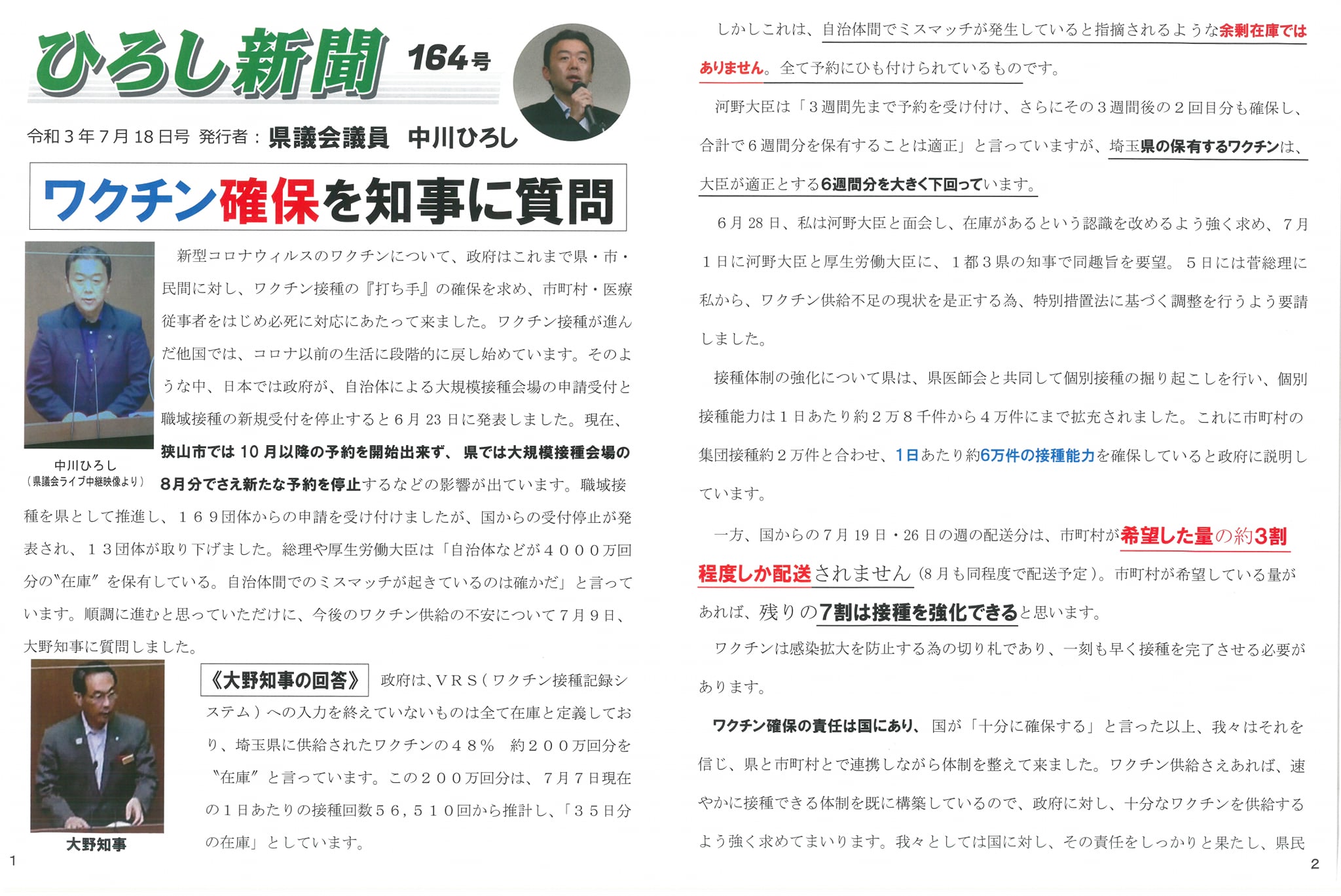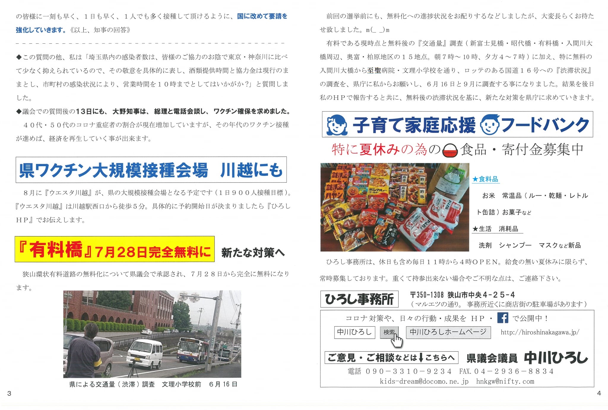 『ワクチン確保策』『川越にも県 大規模接種会場』『有料橋28日に完全無料に』『夏休みに向けたフードバンク食品・寄付金募集』について、私が書いたものが入っています。お読み頂ければと思います。