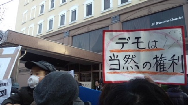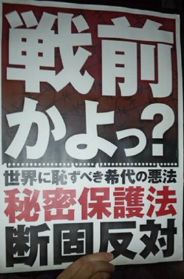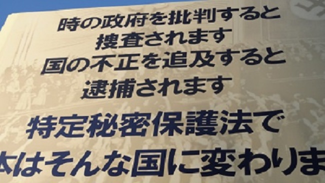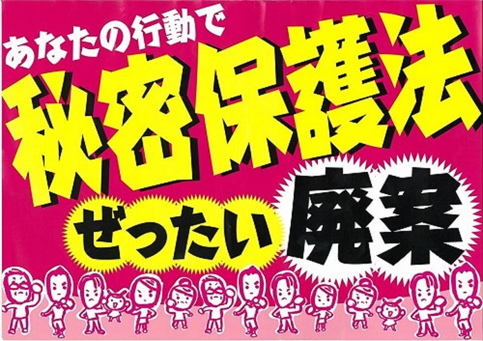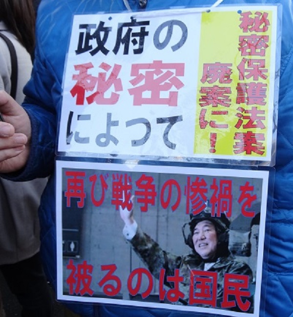 参議院議員会館前で、特定秘密保護法案反対運動。