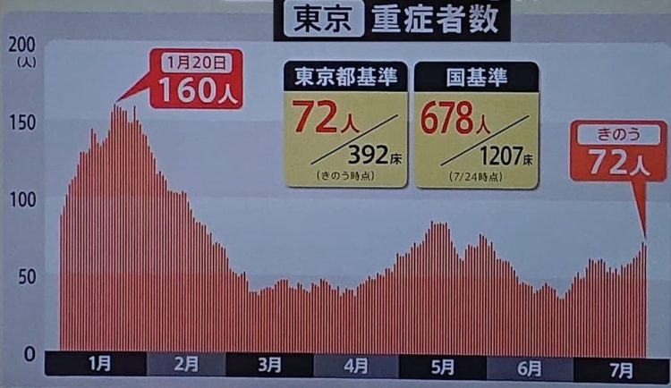 重症者数を都庁の勝手な基準で少なく見せ72人としているので、都民1400万人から見れば、少なく見えてしまう。