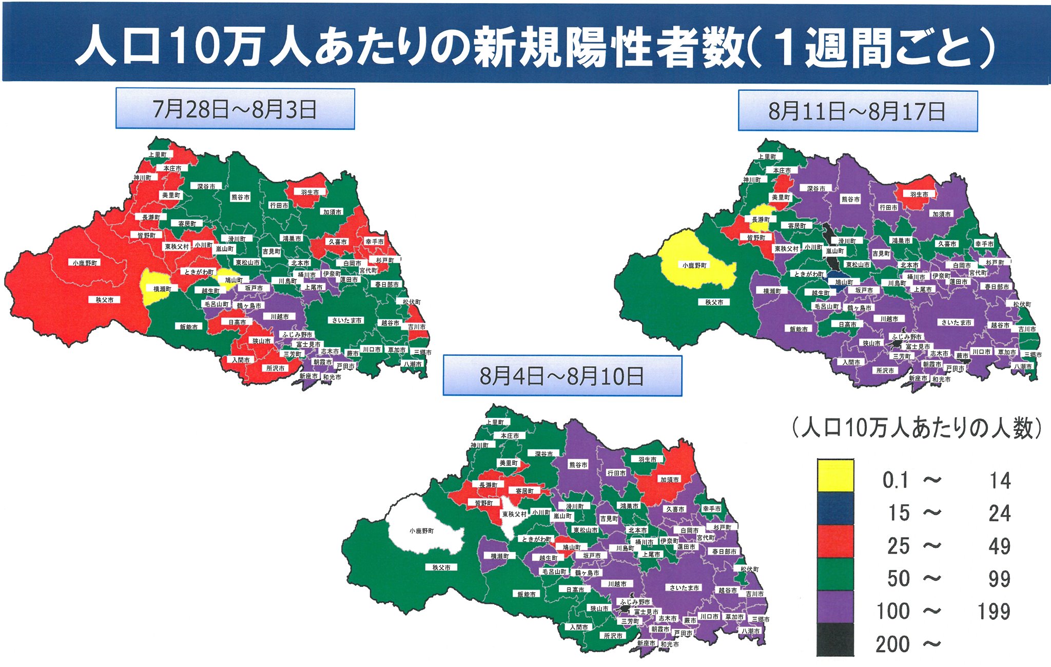 📷写真⇩のように、市町村によって新規陽性者数の多さに差があります。感染の多い所は、対策の強化が より必要です。