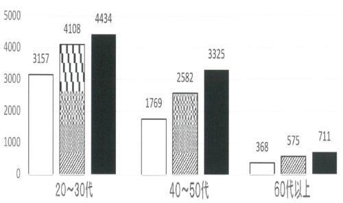 20・30代 88%増、40・50代 40%増、60代以上 93%増(人数は少ない)。