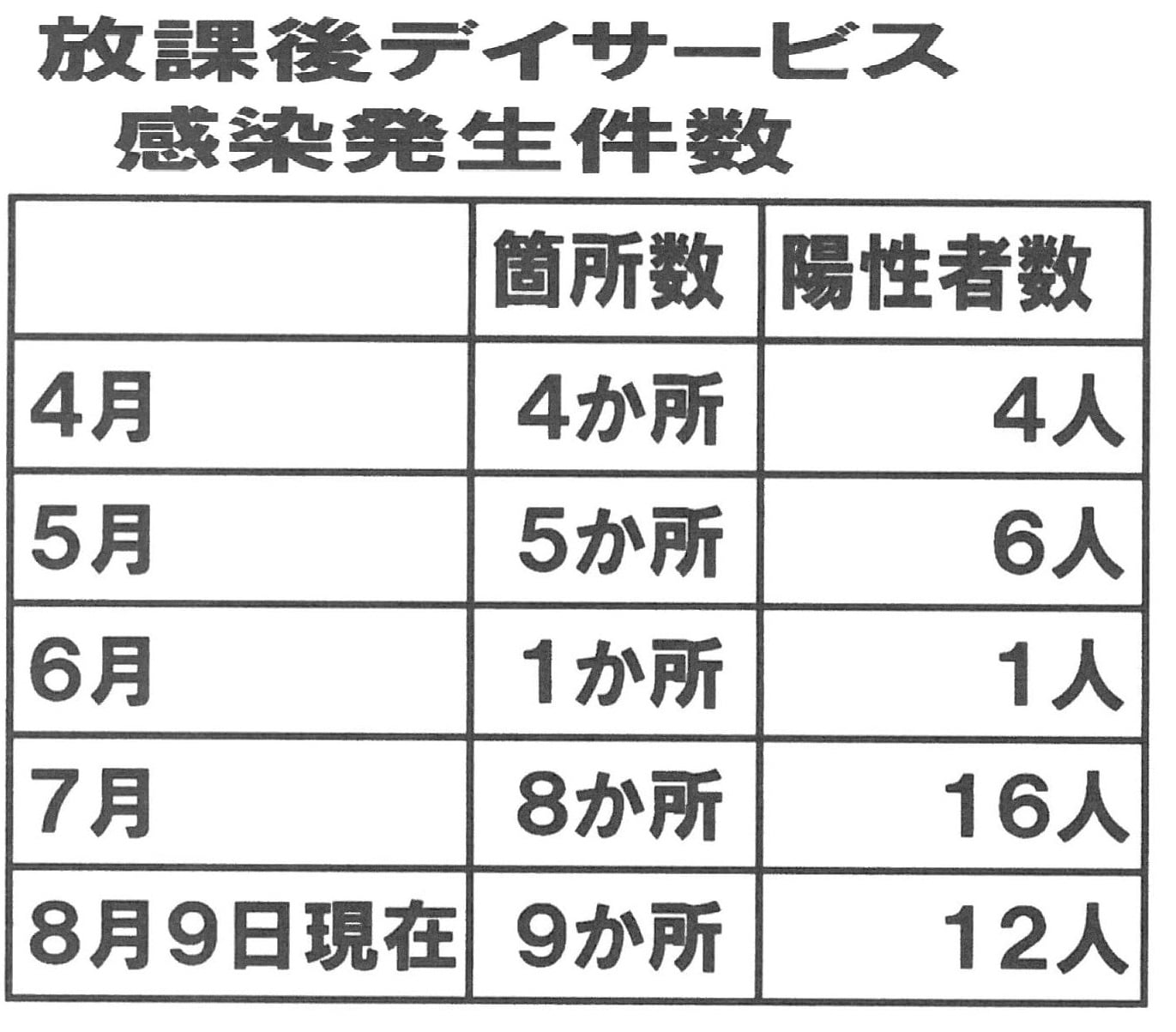 感染防止全般を都道府県が担当しており、広域的に感染がどうなっているのかお伝えしないと動きづらいので、県庁に⇩このデータを①市町村に送ってもらう事と、②放課後デイサービス利用の保護者に施設を通して伝えてもらうよう依頼しました。