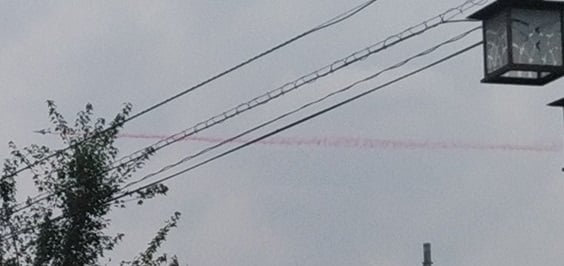 たった今、狭山市内にブルーインパルス✈が、カラフルなスモークを出して飛んでます。
