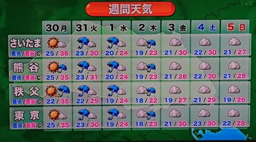 昼間35℃近くになっても【熱帯夜】が埼玉は無かったのでは?(東京は1日あったと聞いてますが、それでも1日!)。