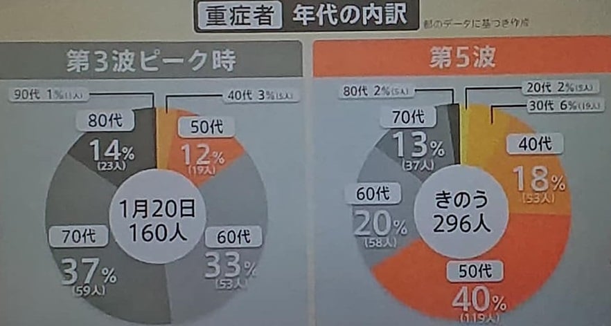 50・40代の割合だけでなく、人数も第3波に比べ、ケタ違いに多い。